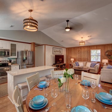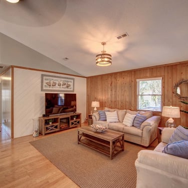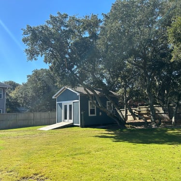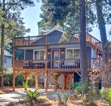 Tucker's Treehouse is located in a nice walking community, near the sound side. The neighborhood is quiet with lots of shade trees. Loved how the host set up the dog crate for us, along with a food and water bowl station. Covers on the couches was an extra touch. The house is spotless. For a dog friendly location, everything was clean and there were no lingering odors of previous fur guests. I think this place is perfectly located in a quiet environment where you and your family can relax after taking in the sights or hanging on the beach.